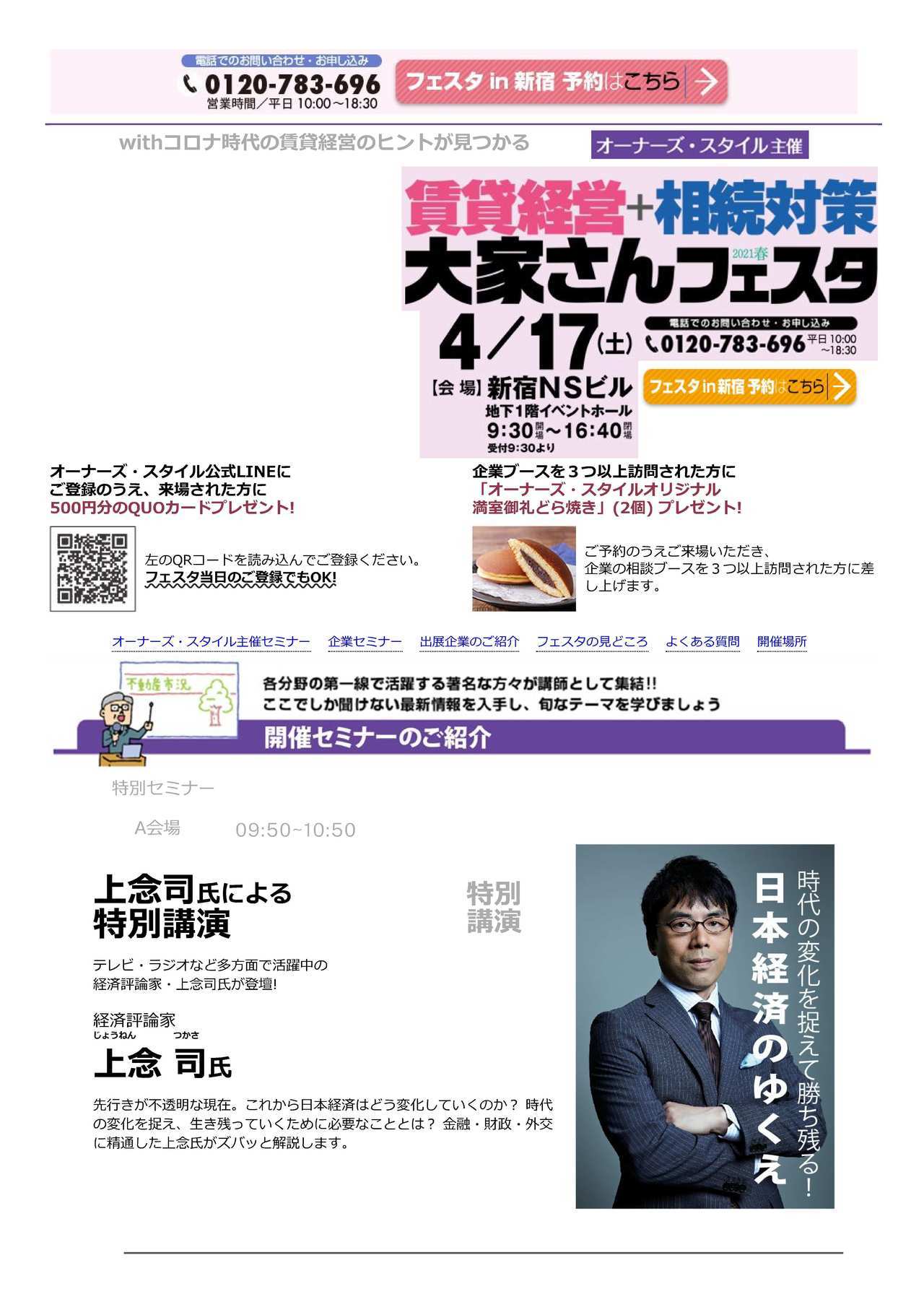 4月17日(土)11時より新宿NSビルで開催される大家さんフェスタで講師をさせて頂きます。
