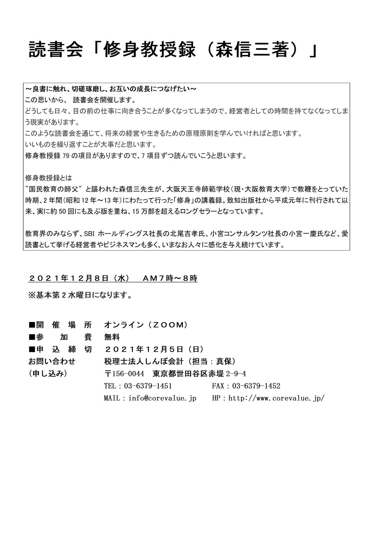 (申し込み) TEL:03-6379-1451 FAX:03-6379-1452 MAIL:info@corevalue.jp